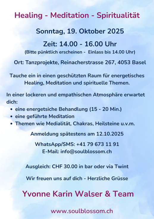 Bitte melde dich unter +41 79 673 11 91 (WhatsApp) oder info@soulblossom an.